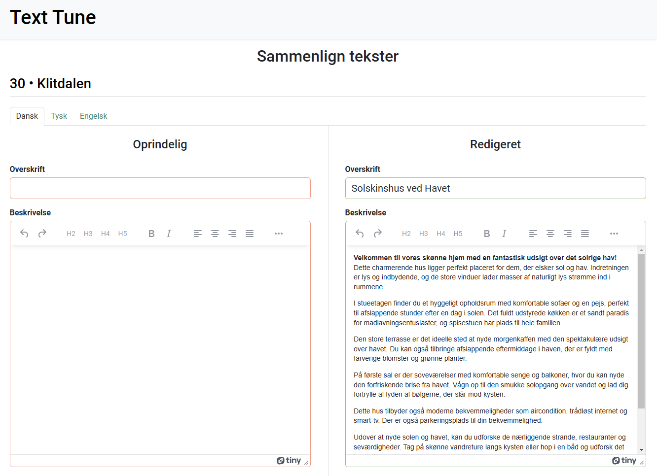 giver Text Tune dig mulighed for at redigere de AI-genererede tekster efter behov.